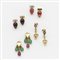 Lotto composto da quattro paia di orecchini a lobo e pendenti in oro giallo con pietre cabochon di varie forme e colore e piccoli diamanti rotondi per complessivi g. 36,60 Lot comprising four pairs of gold earings with cabochon stones and diamonds