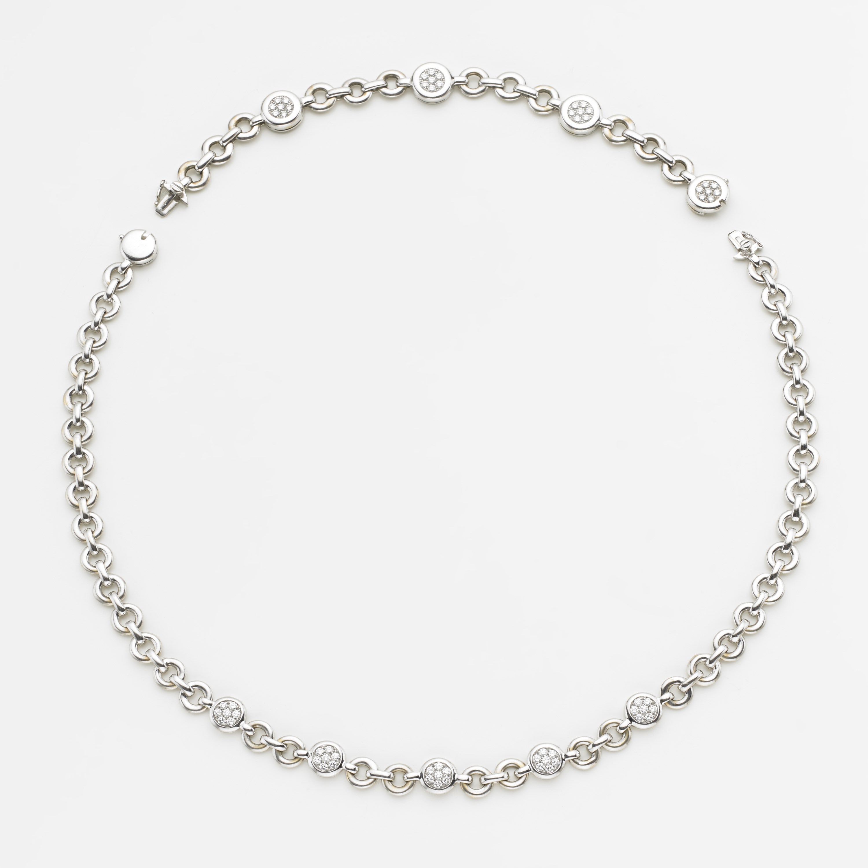 SCHREIBER MILANO Demi-parure collier e bracciale in oro bianco con pavÈ di diamanti rotondi taglio a brillante intercalati alla catena, complessivi g. 90,10 lunghezze rispettivamnte di cm 41,50 e cm 17 Diamond set white gold set of jewellery comprising a chain necklace and bracelet