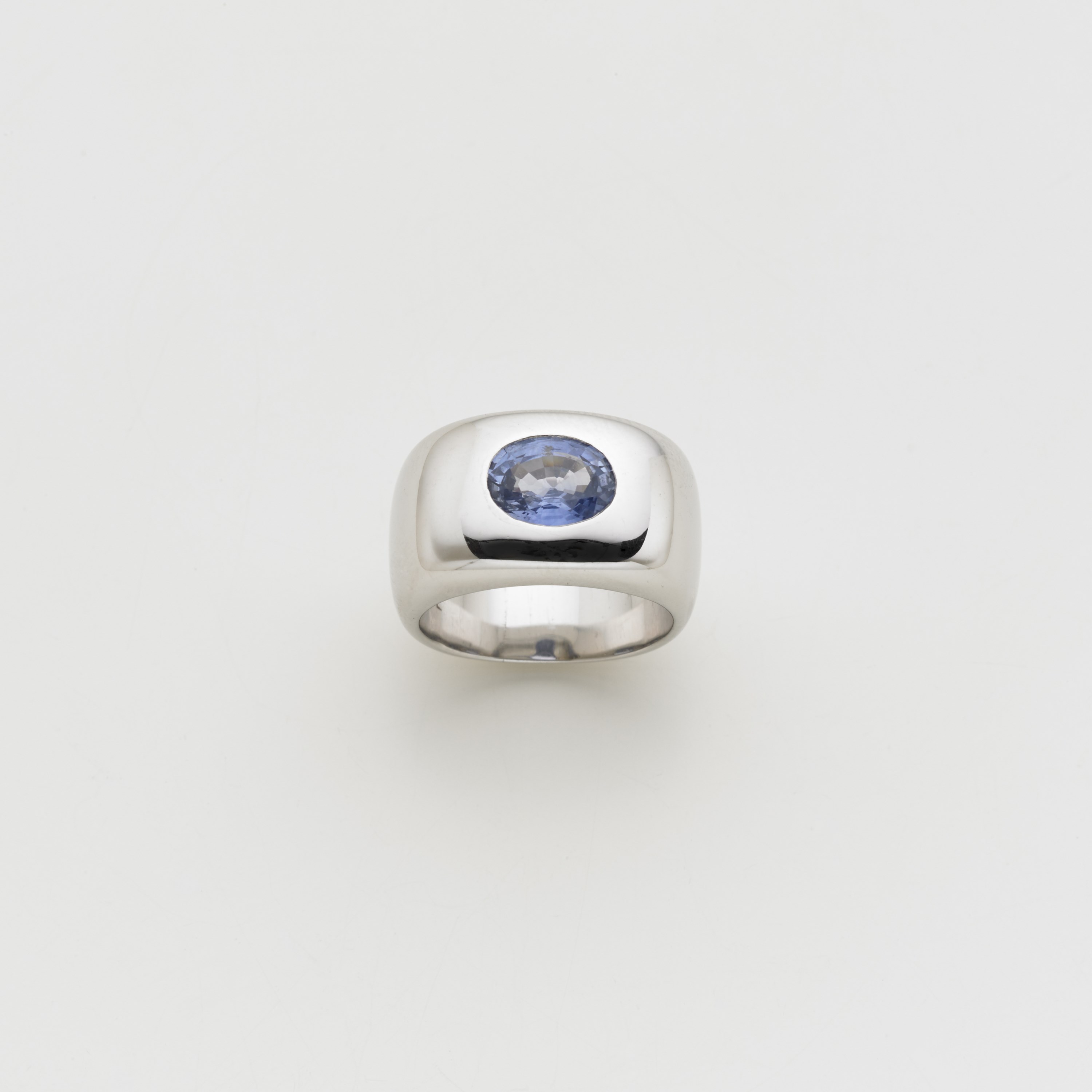 SCHREIBER MILANO Anello in oro bianco con zaffiro ovale taglio composito g. 18,50 misura 13/53, con astuccio originale Sapphire single stone white gold band ring, with original case