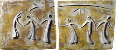 Virgilio Guidi (Roma, 1891 - Venezia, 1984) GIROTONDO- DITTICO Terracotta invetriata, cm. 38x44,5 (ciascuno) due formelle.