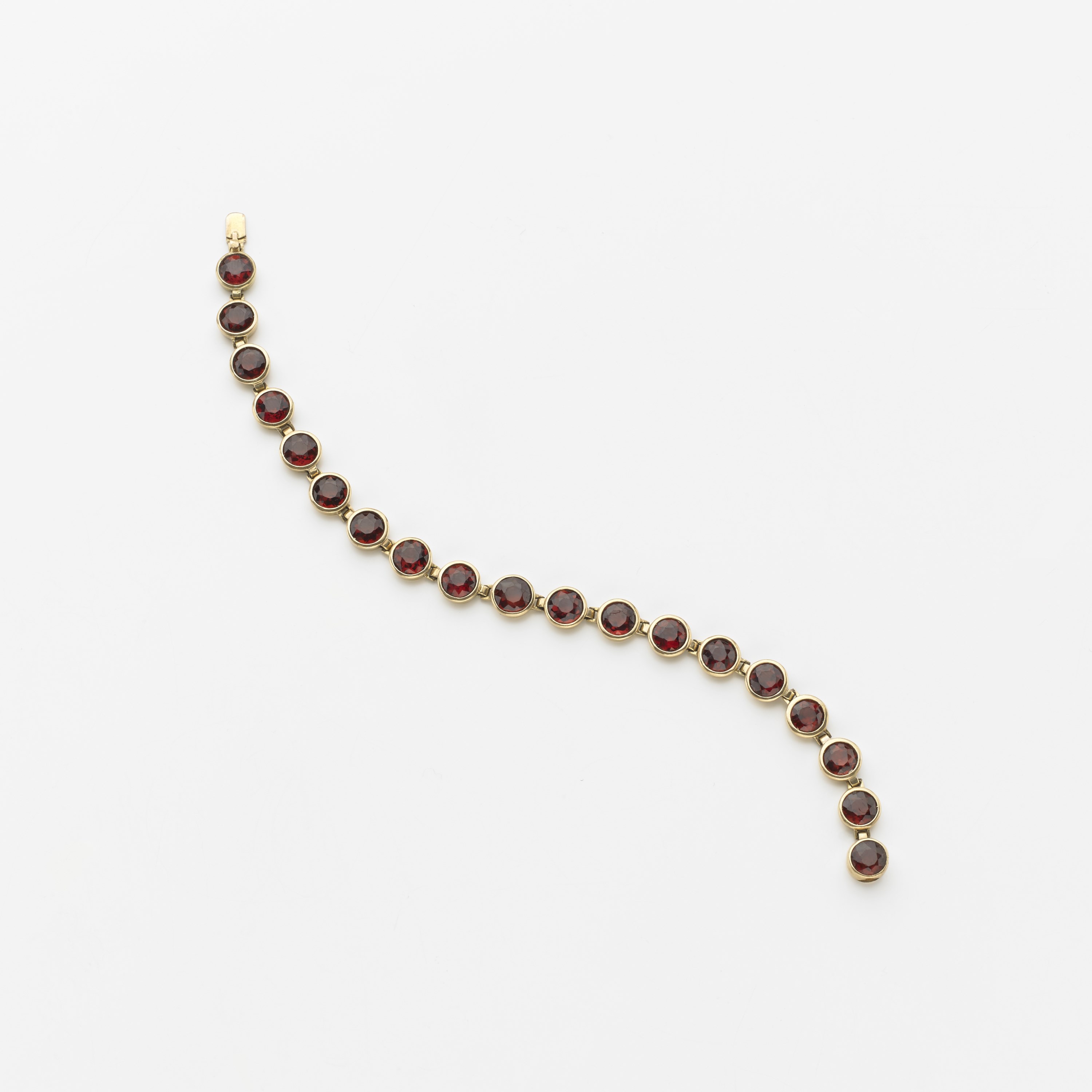 Bracciale in oro giallo con diciannove granati rotondi, g 18,30 lungh. cm 19...