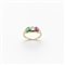 Anello in oro giallo, con diamante rotondo taglio Tolkowsky di ct 0,30 circa, ai lati un rubino ed uno smeraldo, entrambi ovali, taglio composito, g. 3,00. Prov.: dono in occasione dell'unit‡ d'Italia alla trisavola materna C.ssa Emila Martini Giovio della Torre di Rezzonico Lattuada sposata C.ssa Taverna di Landriano Ruby and emerald gold ring centered by a diamond Provenance: present on occasion of the unity of Italy to great aunt Countess Emila Martini Giovio della Torre di Rezzonico Lattuada married Countess Taverna di Landriano