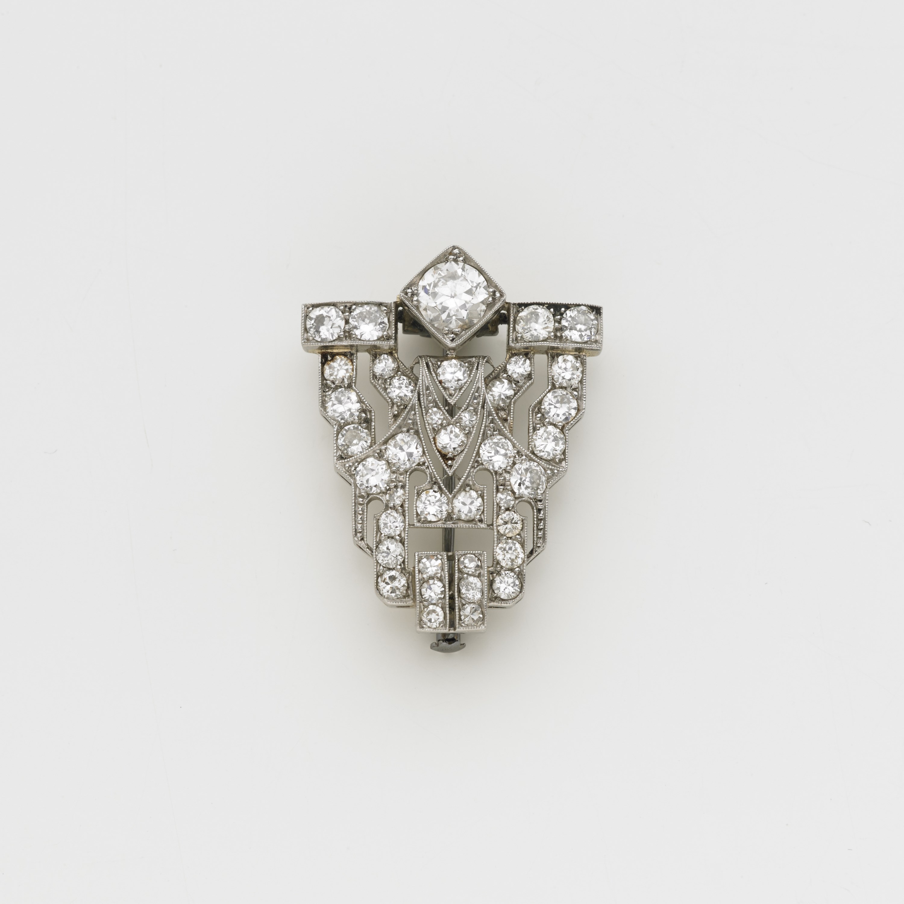 Broche in platino con diamanti rotondi, il centrale in alto taglio a...