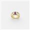 Anello in oro giallo con rubino ovale di ct 0,80 e due diamanti ovali di ct...