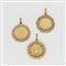 Tre pendenti in oro giallo con tre monete in oro (10 e 20 franchi svizzeri, e...