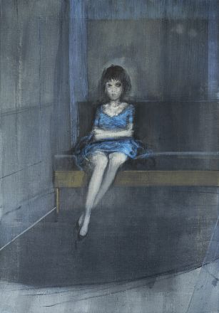 Alberto Sughi (Cesena, 1928) RAGAZZA IN ATTESA, 1962-1963 Olio su tela, cm. 100x70 Firma e titolo sul verso. Autentica dell’autore su foto.
