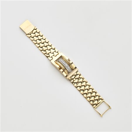 MERSMANN LUGANO Orologio a scomparsa in oro giallo e bianco con pavÈ di diamanti, g.82,60 Bi-coloured gold diamond set retractable watch bracelet