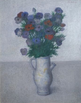 Antonio Bueno (Berlino, 1918 - Firenze, 1984) ANEMONI Olio su faesite, cm. 50x40 Firma in alto a destra. Sul verso: numero di archiviazione; etichetta Mostra Antologica di Antonio Bueno (opere dal 1936 al 1981), aprile-maggio 1981, Palazzo Strozzi, Firenze