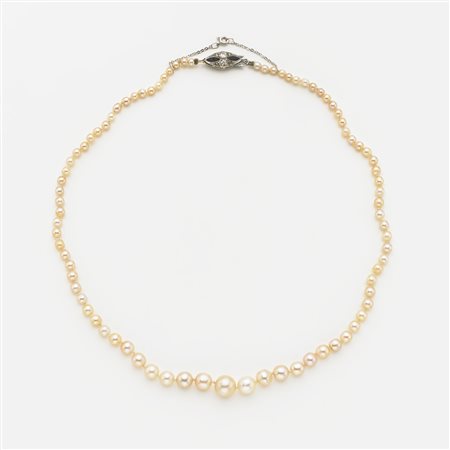 Collana di ottantatre perle naturali di acqua salata da mm 3 a mm 9 con...