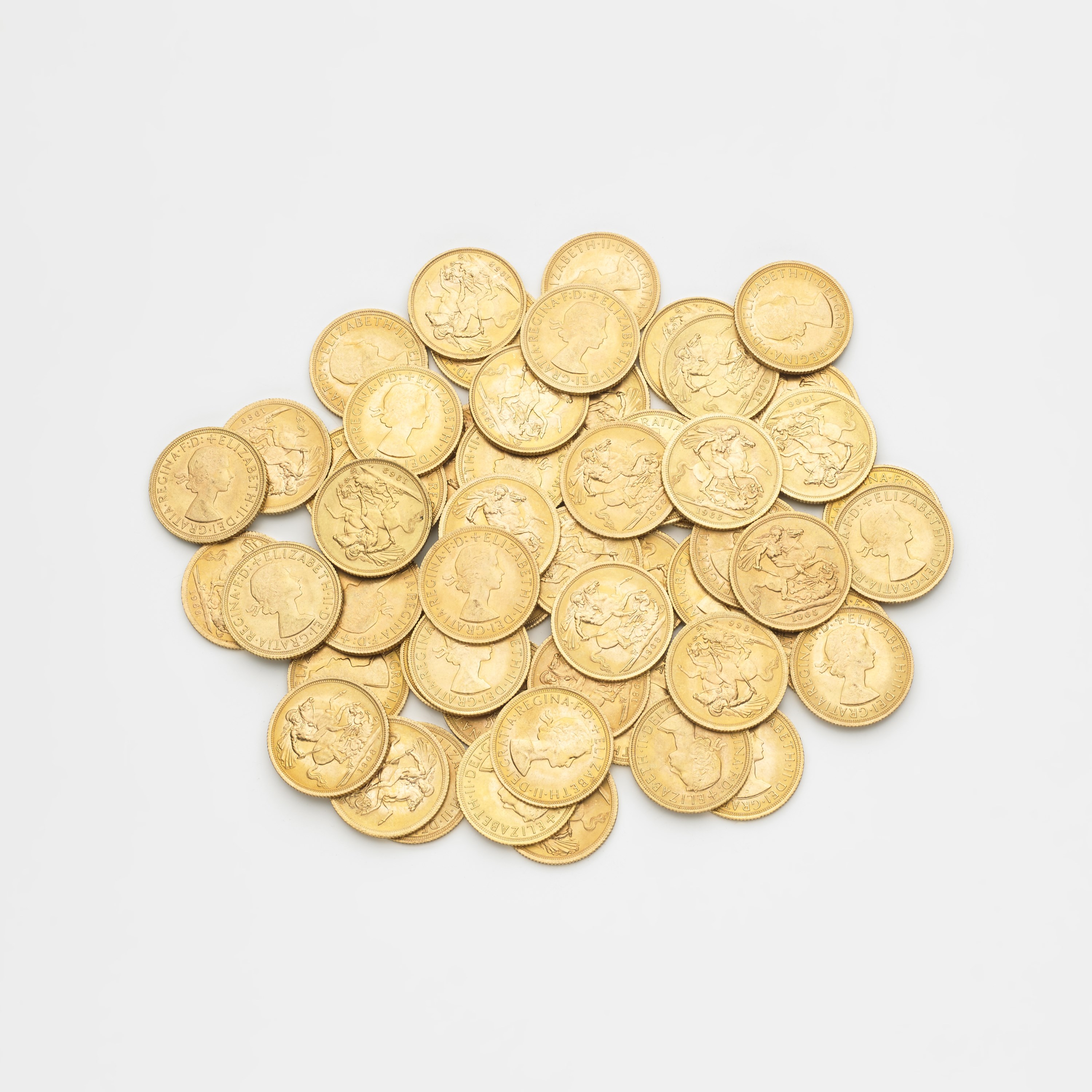 Lotto composto da 55 sterline inglesi d'oro nuovo conio g. 439,50 Lot comprising 55 new mint Sovreigns