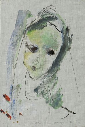 Ernesto Treccani (Milano, 1920 - 2009) VOLTO Olio su tela, cm. 15,5x10 Firma in basso a destra e sul verso.