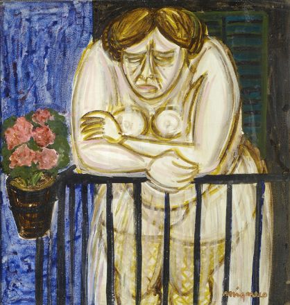 Giuseppe Migneco (Messina, 1908 - Milano, 1997) FIGURA ALLA FINESTRA Tempera...