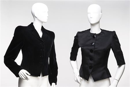 GIORGIO ARMANI e anonimo Lotto composto da giacchino sciancrato in velluto nero e giacchino mezza manica in raso nero