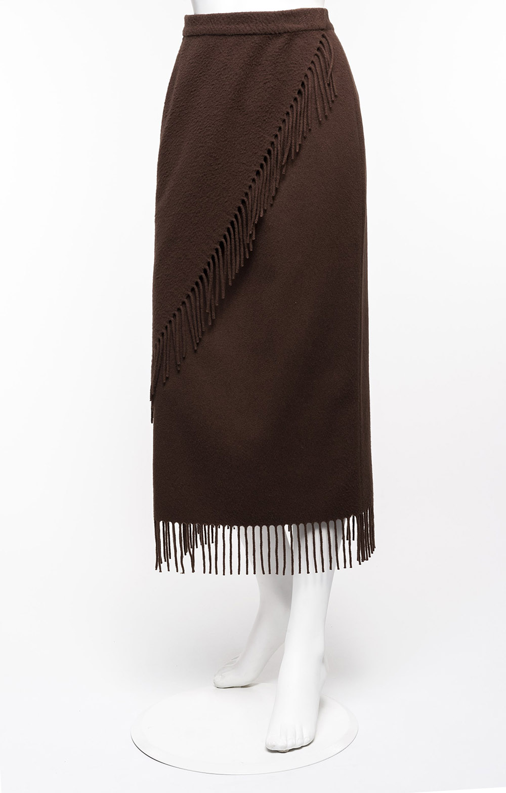VALENTINO Gonna lonquette in cachemere cammello con frange (mis42)