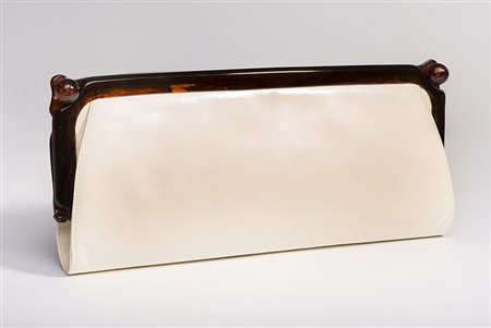 Pochette in pelle bianca con chiusura in galalite color tartaruga