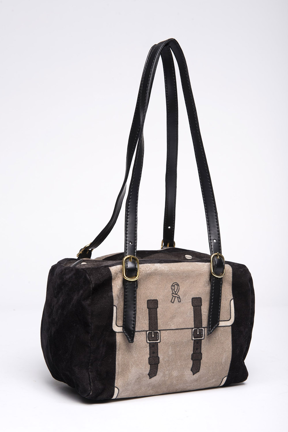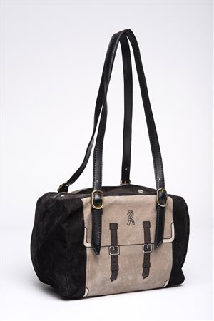 ROBERTA DI CAMERINO Borsa a due manici in tessuto beige e nero, cm 21,50...