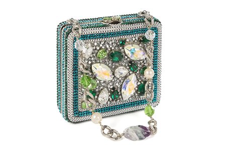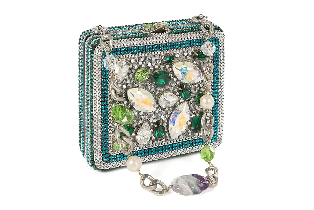 Borsetta gioiello a tracolla con strass nei toni del verde turchese e argento