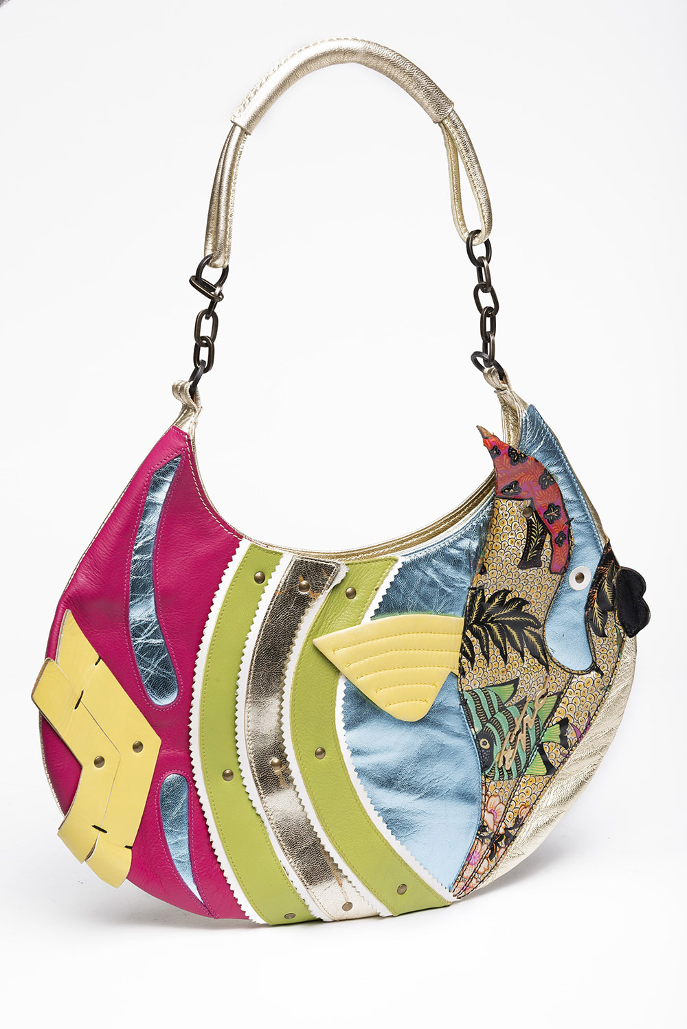 ETRO Borsa patchwork multicolor in materiali diversi a rappresentare un pesce, cm 40 (difetti)