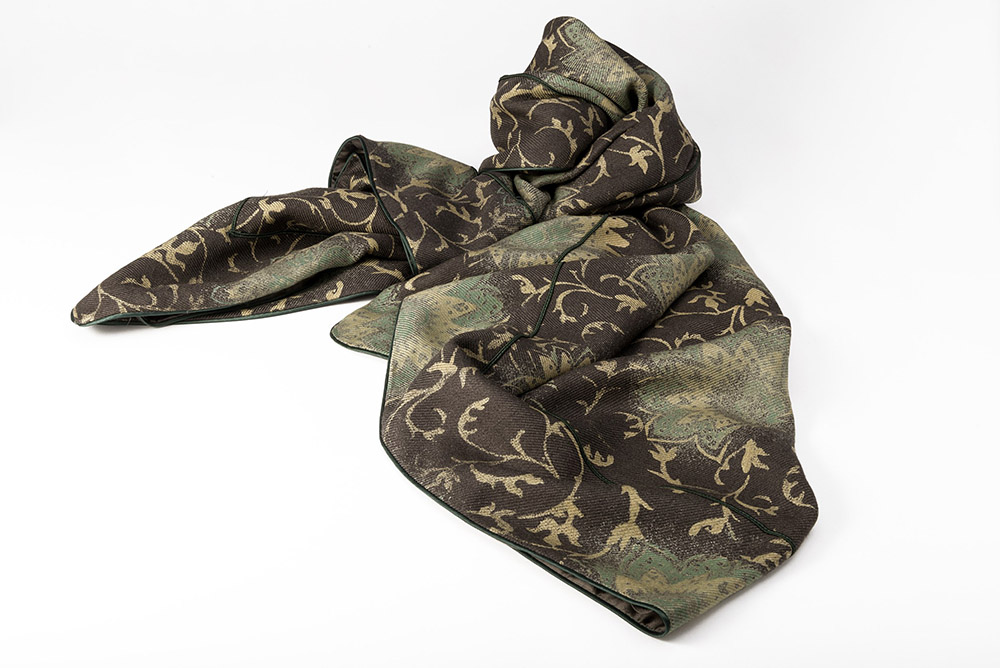 GIORGIO ARMANI "Le Collezioni" Grande carrÈ in cachemere e seta nei toni del verde salvia (lievi difetti)