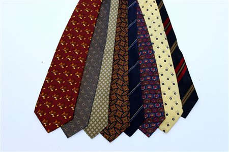 YVES SAINT LAURENT Lotto di 8 cravatte in seta di vari colori e diverse fantasie