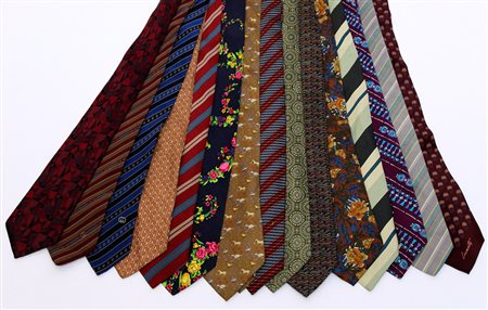 FENDI, FERRAGAMO, VERSACE,VALENTINO, LANCETTI, EMILIO PUCCI, ARMANI GUCCI, MISSONI Lotto di 15 cravatte in seta e cotone di vari colori