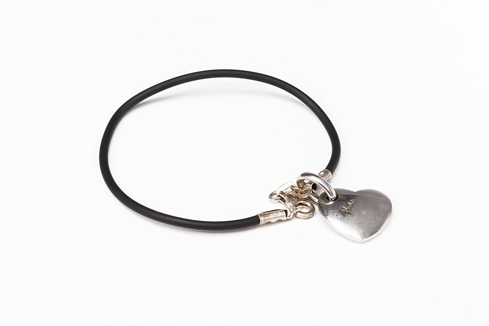 POMELLATO Braccialetto in caoutchouc con chiusura e cuoricino in argento. Scatola originale