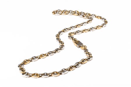 LACAVERA collana lunga a maglia marinara bi-colore oro e argento, lung cm 98