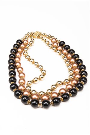 VALENTINO Collana con tre fili di boules color nero, rame e oro, chiusura...