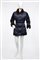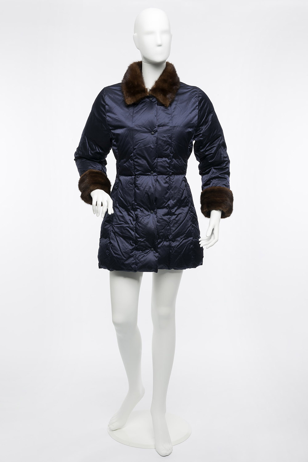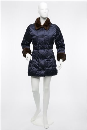 Moncler: giaccone piumino blu con bordature in visone, tg 40