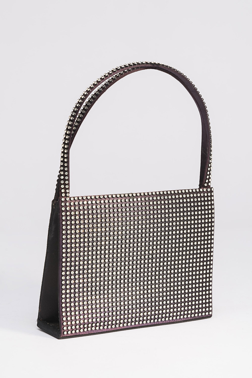 MINIOS, PARIS Borsetta da sera con doppio manico in raso nero e strass,...