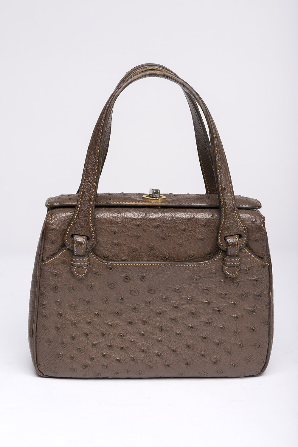 GUCCI, FIRENZE Borsa in pelle di struzzo marrone a due manici, cm 24 (lievi...