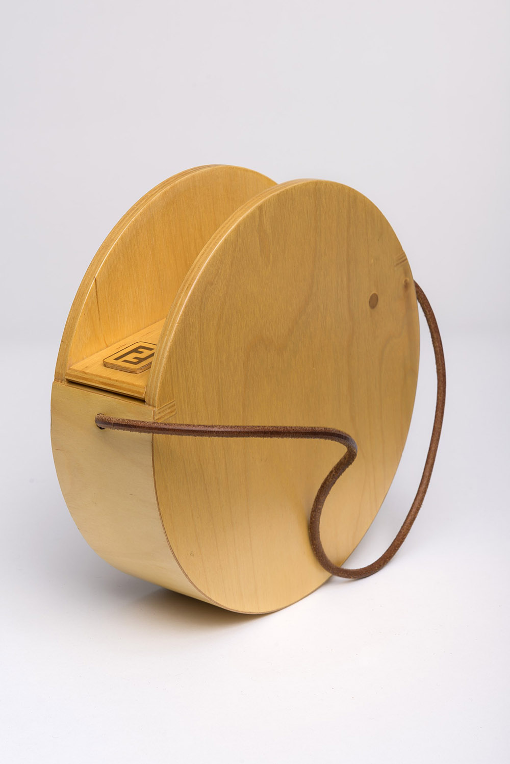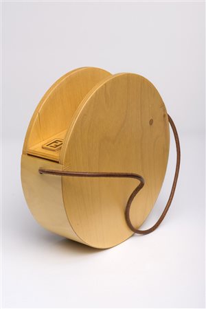 FENDI Borsa rotonda in legno con tracolla in cuoio (diam cm 24)