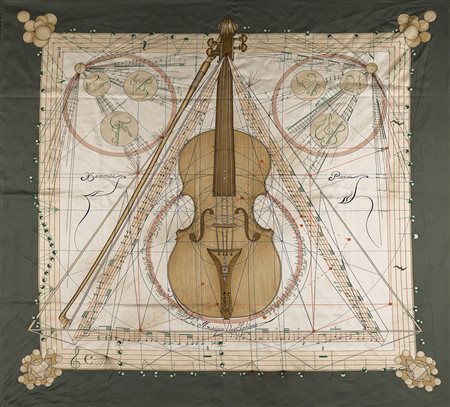 HERMES, PARIS Foulard in seta "La musique des SphËres", ZoÈ Pauwels (difetti)
