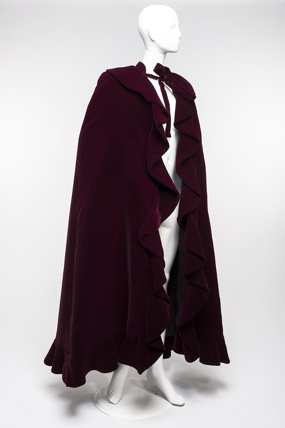 ROBERTO CAPUCCI ALTA MODA, Roma Cappa in velluto di cotone color vinaccia bordata da importante volant (tg. 44)