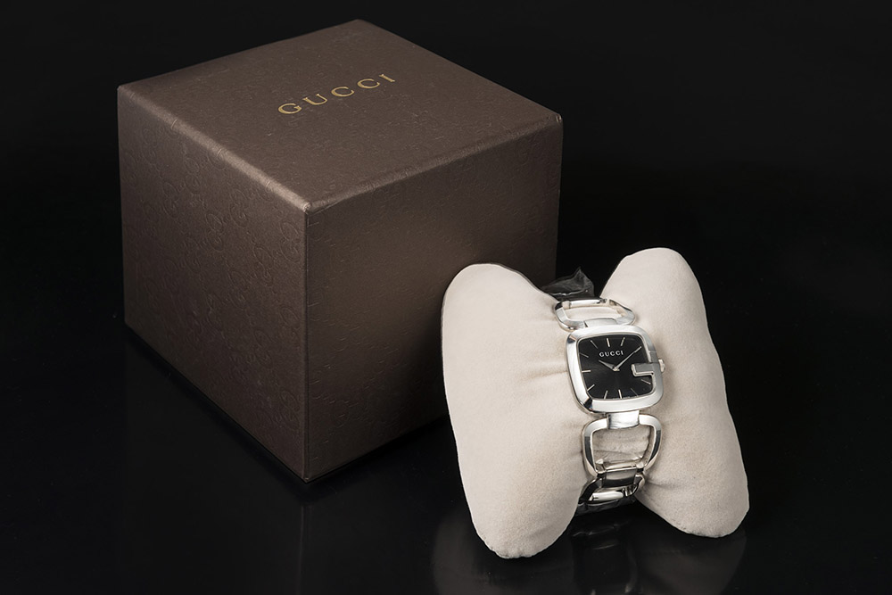 GUCCI Orologio da donna con bracciale in metallo color nichel a catena semi rigida, garanzia e scatola originale (nuovo)
