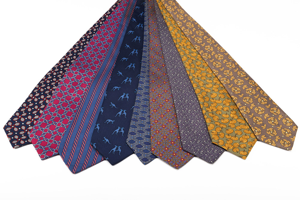 HERMES, PARIS Lotto composto da 9 cravatte in seta di varie forme, disegni e colori