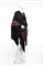 Scialle a triangolo in maglina nera con lunghe frange e ricami in paillettes rosa e fucsia (difetti)