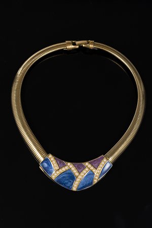 TRIFARI Collana tubogas con placca centrale in smalti viola e blu con...