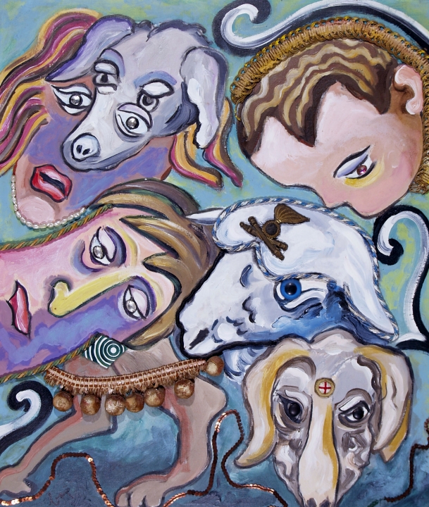 BAJ ENRICO (Milano 1924 - Varese 2003) "Personaggi con caproni" 1990 Acrilici...