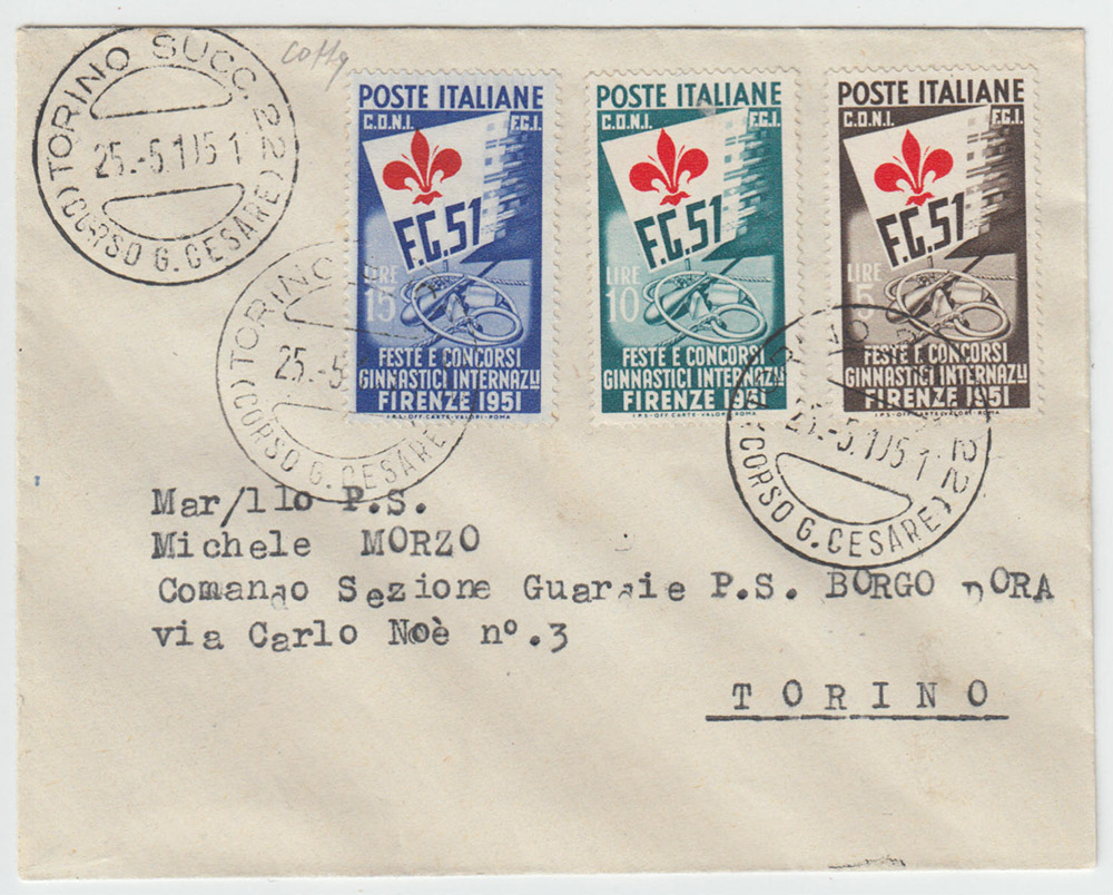 [REPUBBLICA] 1951 Giochi Ginnici usati su busta da Torino per citt‡, 15 lire...