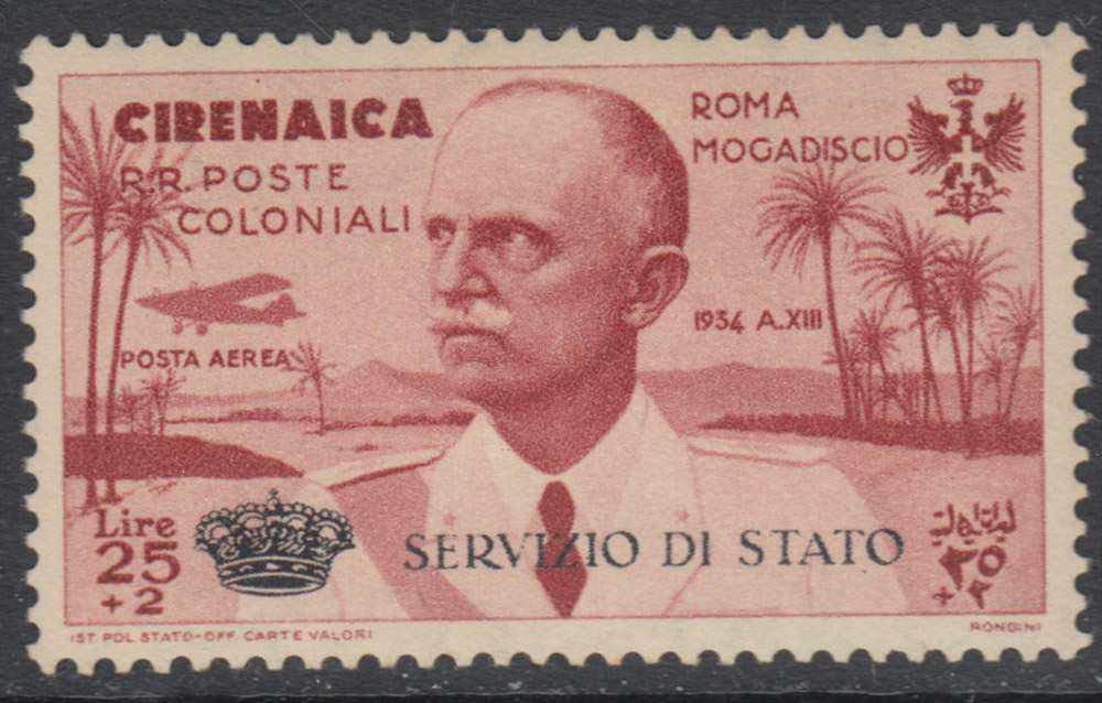 [CIRENAICA] 1934 Servizio aereo, "Coroncina" 25+2 lire carminio. Da...