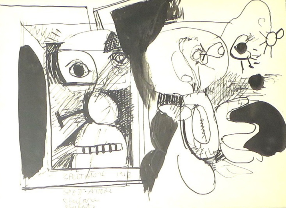 Cintoli Claudio (Imola, 1935 - Roma, 1978) SPETTATORE, 1962 Tecnica mista su carta 24x31,5 cm Titolo e data sul fronte Autentica dell'artista su foto Provenienza: già Collezione privata Claudio Cintoli Mixed media on paper 24x31,5 cm Titled, dated, recto Photo certificate of authenticity issued by the artist Provenance: formerly Private Collection Claudio Cintoli