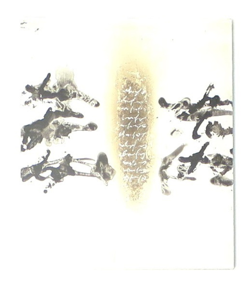 Rapetti Mogol Alfredo (Milano, 1961) FRAMMENTO N° 2, 2009 Tecnica mista su tavola 29x25 cm Firma, data, titolo, al retro Etichetta della Galleria d'Arte ModenArte, Modena, sul retro Mixed media on panel 29x25 cm Signed, dated, and titled, verso Label of the ModenArte Gallery, Modena, Italy, verso