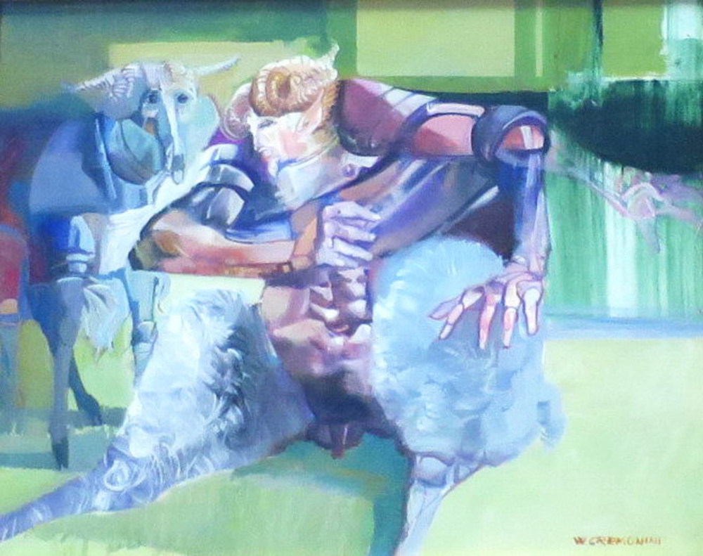 Cremonini Walter olio su tela cm 40x 50 raff. "il flauto e la capra"