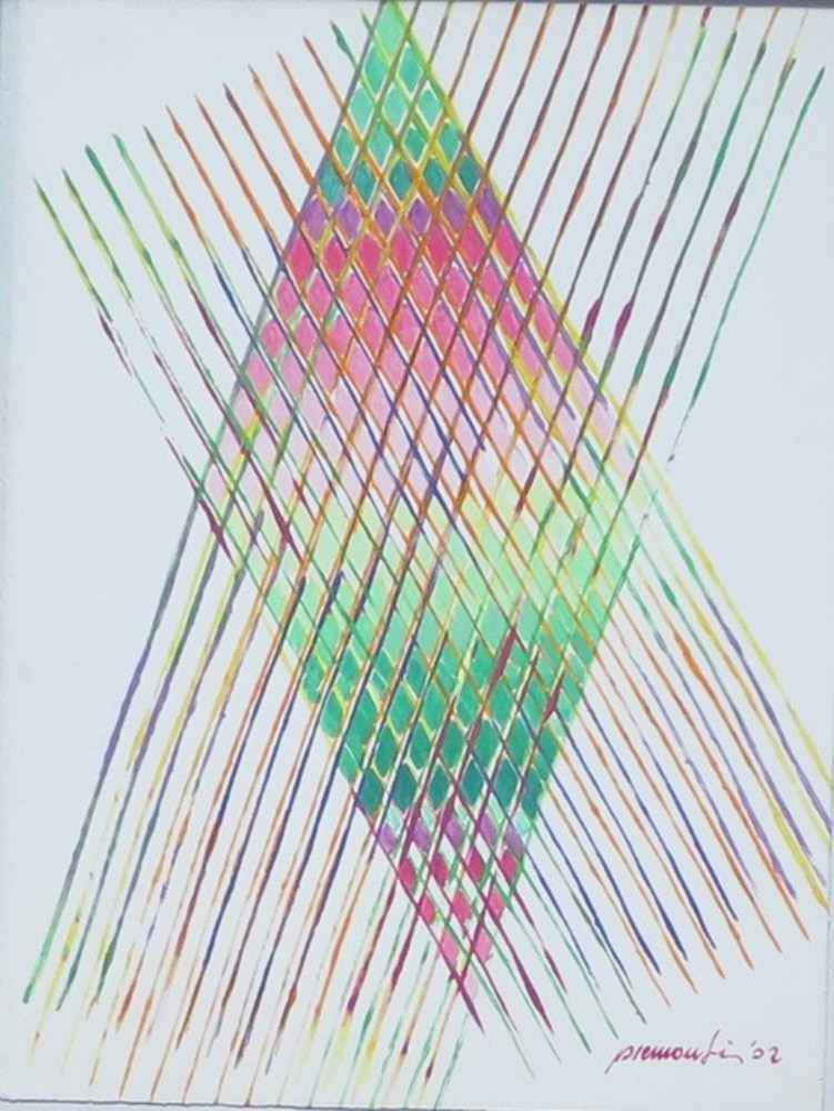 Piemonti Lorenzo (Carate Brianza MB, 1935-2015) ACCELERAZIONI, 2002 Acrilico su carta 34,5x25 cm Firma e data, in basso a destra Autentica dell'artista su foto, rif. N 602 2002 Acrylic on paper 34,5x25 cm Signed and dated, lower right Photo certificate of authenticity issued by the artist, ref. N° 602 2002