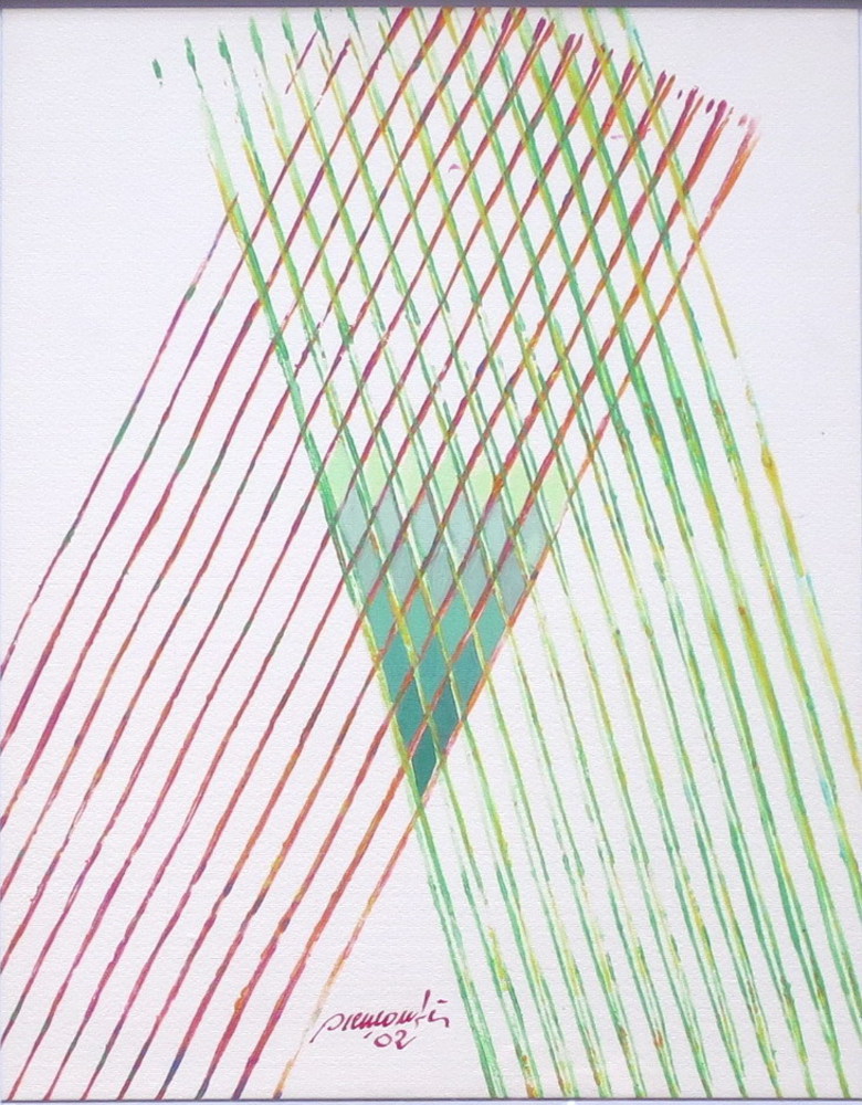 Piemonti Lorenzo (Carate Brianza MB, 1935-2015) Acrilico su carta 31x24,5 cm Firma e data, in basso al centro Autentica dell'artista su foto, rif. N° 597 2002 Acrylic on paper 31x24,5 cm Signed and dated, l. c. Photo certificate of authenticity issued by the artist, ref. 597 2002