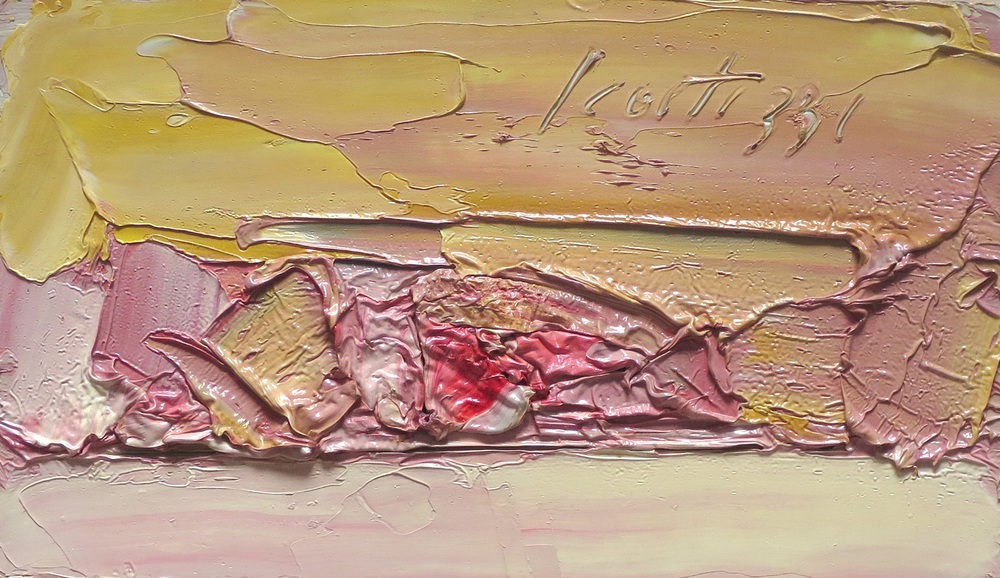 Scatizzi Sergio (Gragnano NA, 1918- Firenze, 2009) SENZA TITOLO Olio su tavola 23x40 cm Firma dell'artista, in alto Autentica dell'artista su foto, rif. N° ATV 17178 Oil on board 23x40 cm Signed, upper Photo certificate of authenticity issued by the artist, ref. ATV 17178
