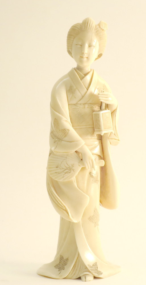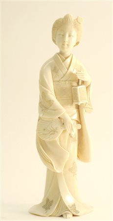 Okimono geisha in avorio Giappone Meiji h cm.19