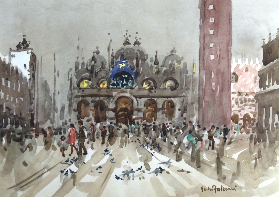 Lotto 74 | FALZONI GIULIO (Marmirolo 1900 - Milano 1978) "Piazza San Marco, Venezia"...