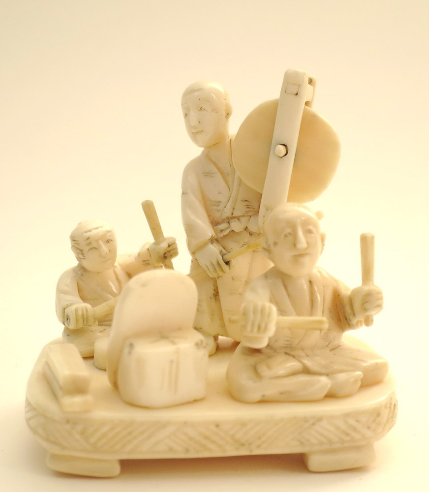 Netsuke raffigurante suonatori ambulanti giappone Meiji Cm 9,5x5